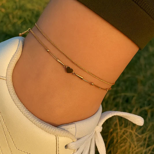 Elegant Dual-Layer Gold Payal with Heart Charms